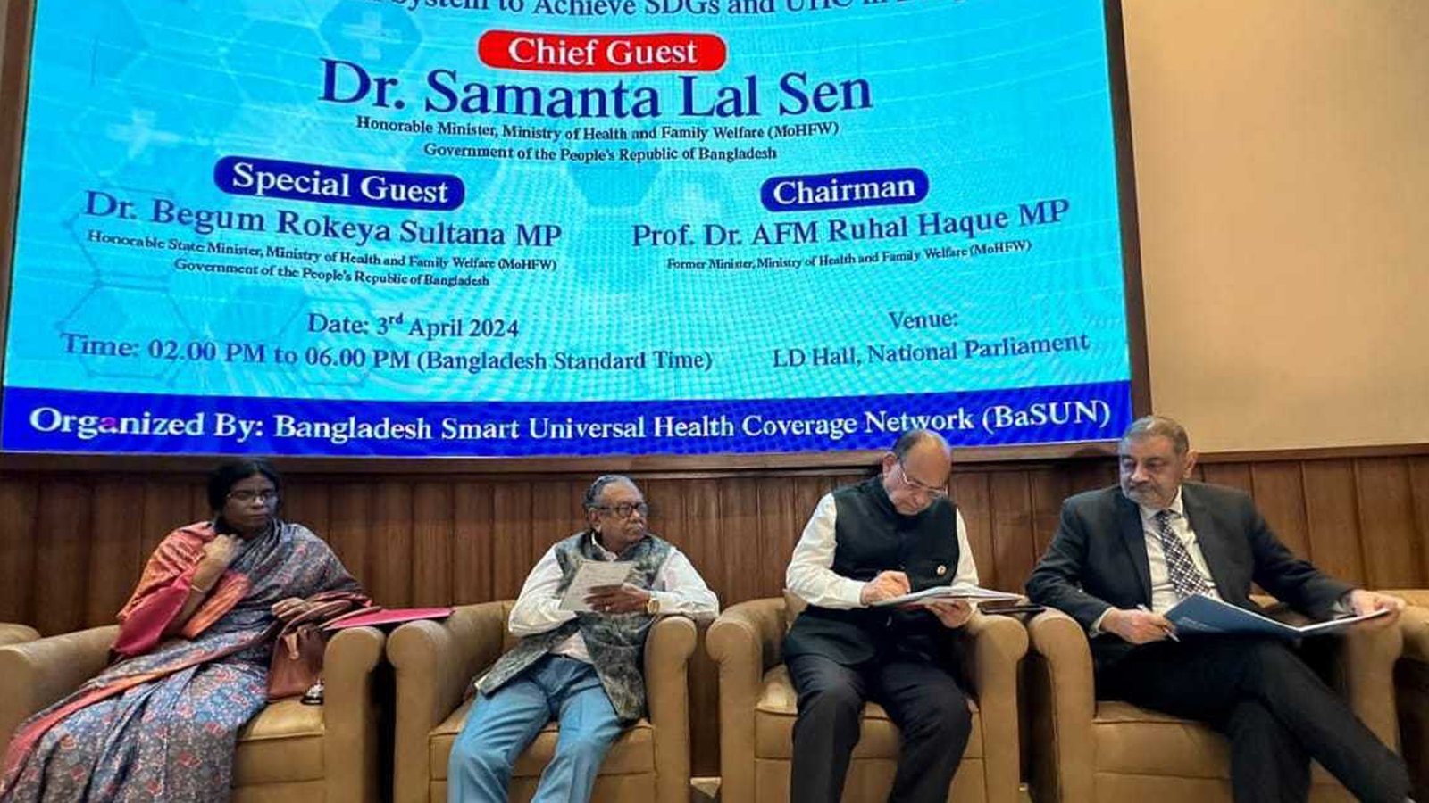 সংবাদ সম্মেলনে স্বাস্থ্য প্রতিমন্ত্রী মুরাদ হাসান, স্বাস্থ্যসেবা বিভাগের সচিব আসাদুল ইসলাম উপস্থিত ছিলেন।