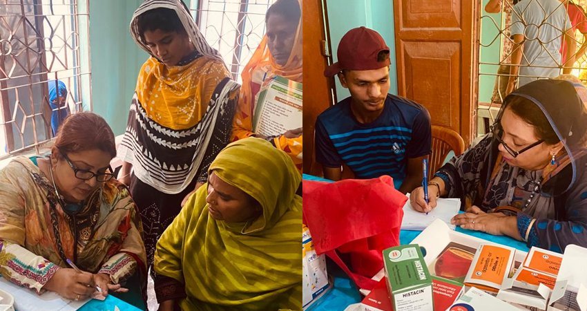 বিনামূল্যে স্বাস্থ্যসেবা কর্মসূচিতে রোগি দেখছেন চিকিৎসকরা