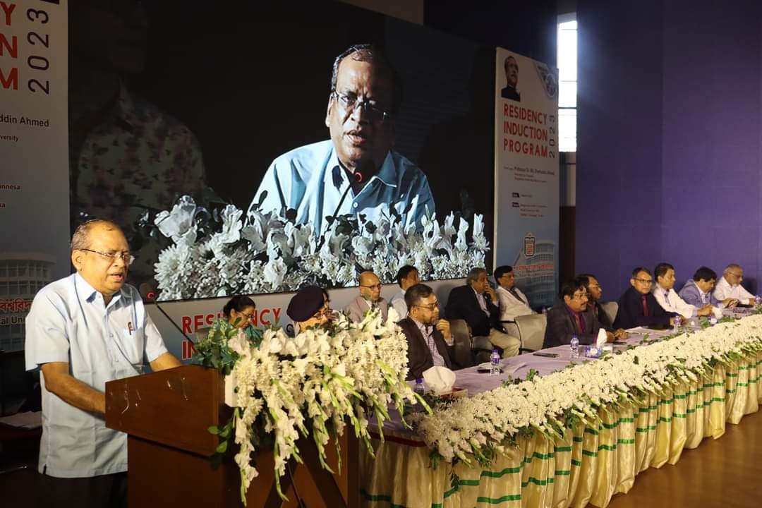 উপ-উপাচার্য (শিক্ষা) অধ্যাপক ডা. একেএম মোশাররফ হোসেন বলেন, জ্ঞান বৃদ্ধি, দক্ষতা অর্জন ও উৎকর্ষ সাধনে রেসিডেন্সী প্রোগ্রামের বিকল্প নাই। তিনি তাঁর বক্তব্যে নবাগত রেসিডেন্টগণকে স্মার্ট ফিজিশিয়ান্স হিসেবে গড়ে তোলার আহ্বান জানান।
