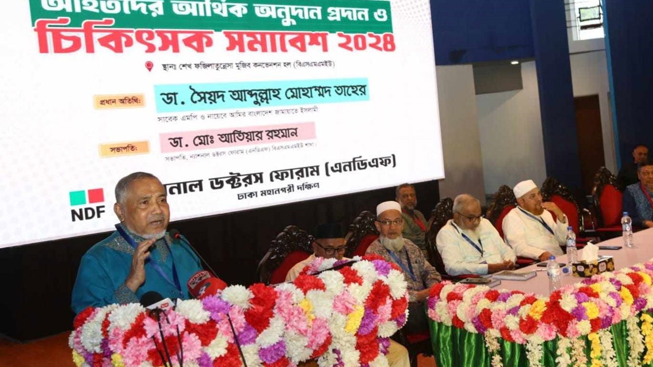 সোমবার (১৬ সেপ্টেম্বর) রাজধানীর একটি কনভেনশন হলে চিকিৎসকদের অন্যতম জাতীয় সংগঠন ন্যাশনাল ডক্টরস ফোরাম (এনডিএফ) ঢাকা মহানগর দক্ষিণের চিকিৎসক সমাবেশে প্রধান অতিথির বক্তব্যে তিনি এ দাবি জানান।