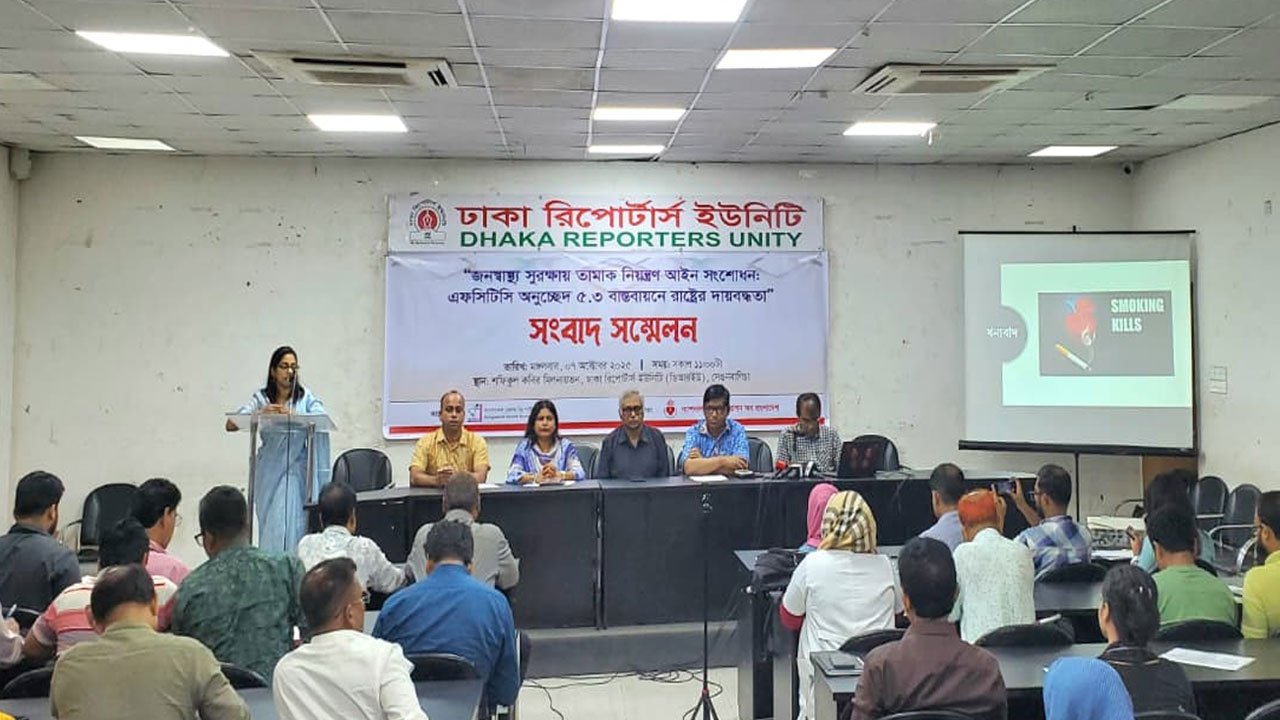 মঙ্গলবার (৭ অক্টোবর) ঢাকা রিপোর্টার্স ইউনিটির শফিকুল কবির মিলনায়তনে আয়োজিত ‘জনস্বাস্থ্য সুরক্ষায় তামাক নিয়ন্ত্রণ আইন সংশোধন: এফসিটিসি অনুচ্ছেদ ৫.৩ বাস্তবায়নে রাষ্ট্রের দায়বদ্ধতা’ শীর্ষক এক সংবাদ সম্মেলনে এই দাবি জানায় বিএইচআরএফ।