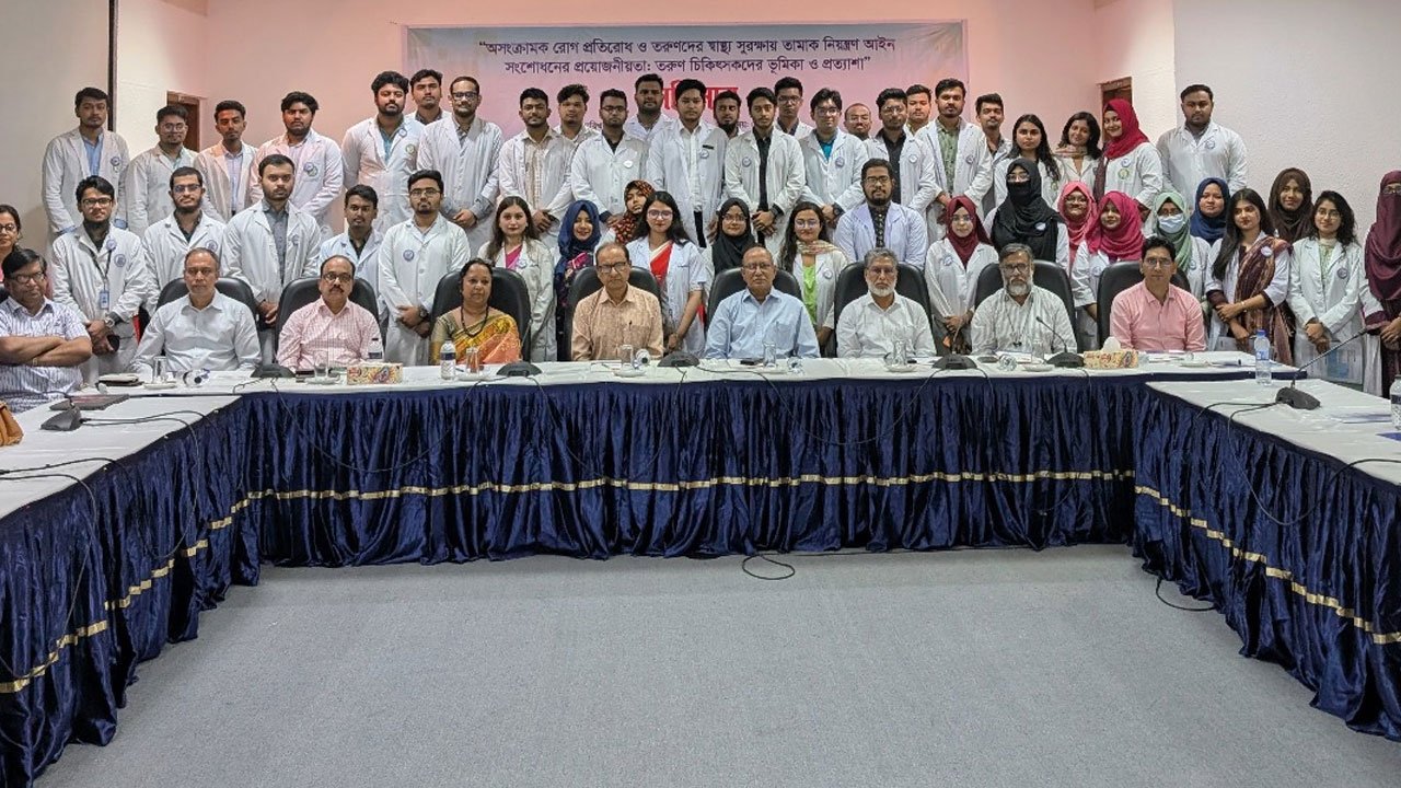 আজ (বুধবার) রাজধানীর সিরডাপ মিলনায়তনে ন্যাশনাল হার্ট ফাউন্ডেশন অব বাংলাদেশের আয়োজনে “অসংক্রামক রোগ প্রতিরোধ ও তরুণদের সুরক্ষায় তামাক নিয়ন্ত্রণ আইন সংশোধনের প্রয়োজনীয়তা : তরুণ চিকিৎসকদের করণীয়” শীর্ষক সেমিনারে চিকিৎসকরা এই আহ্বান জানান।